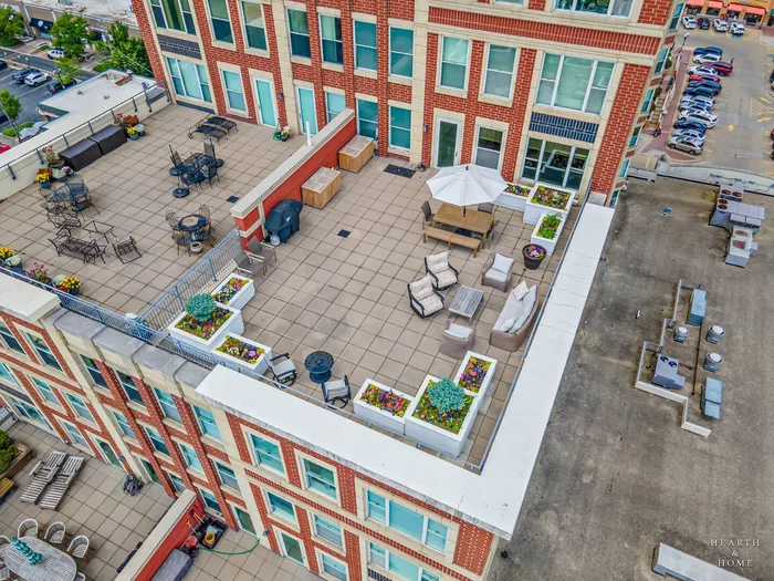 Welcome to The corner of Luxury and Sophistication in the highly desirable heart of downtown Arlington Heights! 77 S Evergreen offers a gorgeous layout with 2 generous bedrooms, 3 full bathrooms, and a jaw dropping 1,200 sq ft Private Terrace-a unique feature shared by only six units in the building! Enjoy the Luxury of condo living without giving up your outdoor living space! The terrace presents sweeping panoramic views including the Chicago skyline, the Arlington Clock Tower, and even a glimpse of the rumored new Bears stadium! Your pets will be happy here too! Enter through a grand foyer into a dramatic open-concept great room, bathed in natural light from wall-to-wall windows, complemented by Brazilian Koa hardwood flooring throughout. The gourmet kitchen- remodeled in 2024, showcases quartz countertops, a Wolf induction cooktop, premium cabinetry, a spacious island, illuminated built-ins, desk niche, and scenic views of the Clock Tower from every vantage point! The Main suite features dual walk-in closets, a luxurious ensuite with separate jetted tub and shower, and its own private balcony-perfect for tranquil mornings. A spacious second bedroom offers ample versatility for guests or a home office. Each of the three full bathrooms is elegantly finished with quality fixtures and thoughtful design. The luxury high-rise Arlington Town Square, built in 2000-2001, provides exceptional service and amenities including wonderful doormen, fitness center, secured heated garage, storage, a party/hospitality room with kitchenette, package receiving area, and onsite maintenance. Included in the sale are 2 highly desirable deeded garage parking spots-ideally located with no neighbor on either side for easy access-and direct access to the condo floors and shopping area without daily parking hassle. You are minutes to everything downtown Arlington Heights has to offer, walking distance to Metra, as well as easy access to highways, expressways, Ohare Airport and Woodfield Mall. Steps away from Dining at Arlington Alfresco! Everything in this home has been crafted and cared for at the highest level. *Click on the virtual tour for terrace tour* Arlington Heights was just ranked the 12th Safest Place to Live in the US! Love where you Live!